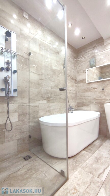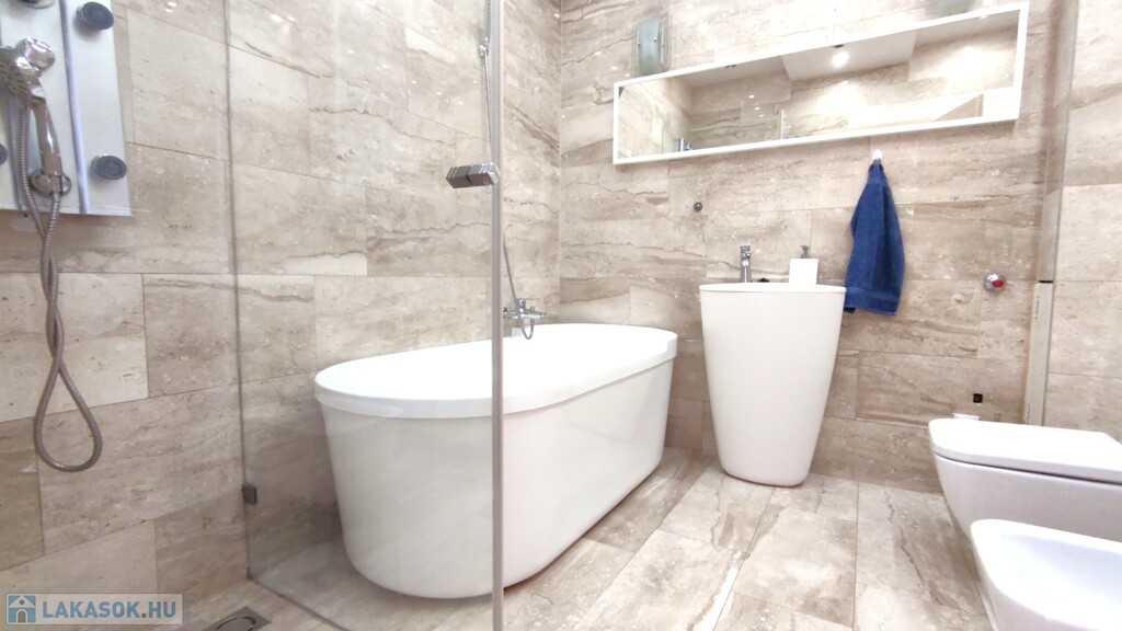 A fürdőszobában kád és zuhany, wc és bidé is használható. Külön vendég wc is van.
