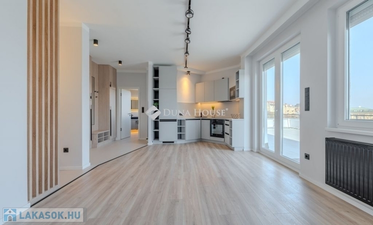 Eladó egy 50nm-es teljes körűen, magas minőségben felújított tetőteraszos lakás, terasz mérete 70nm!