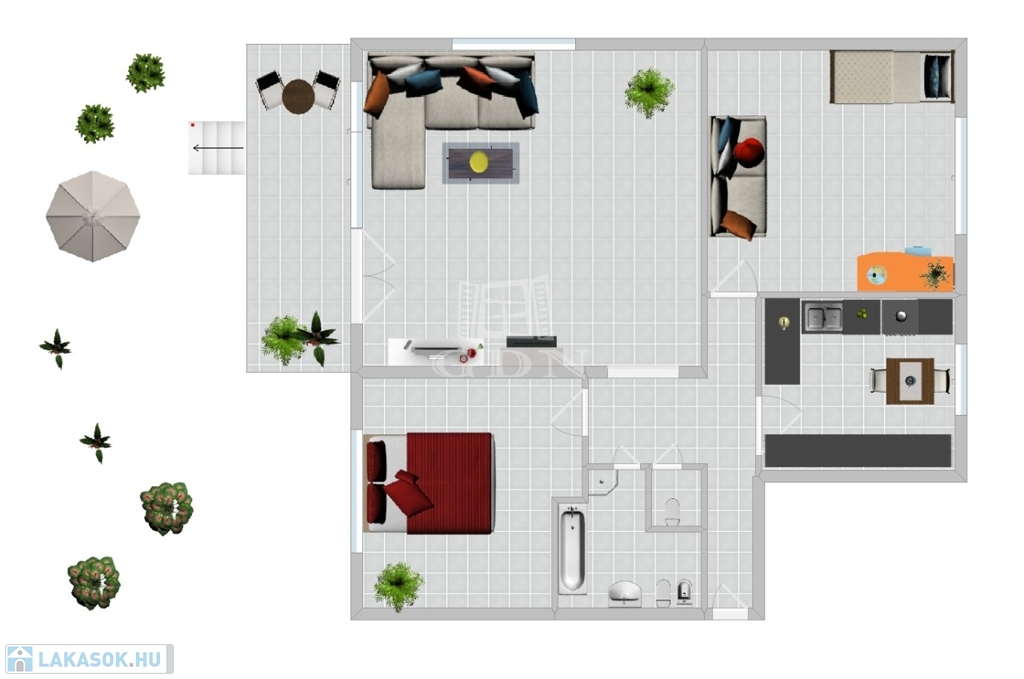 Kertkapcsolat, közvetlen lépcső vezet a kertbe