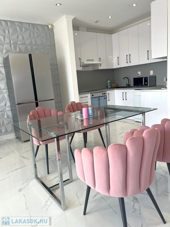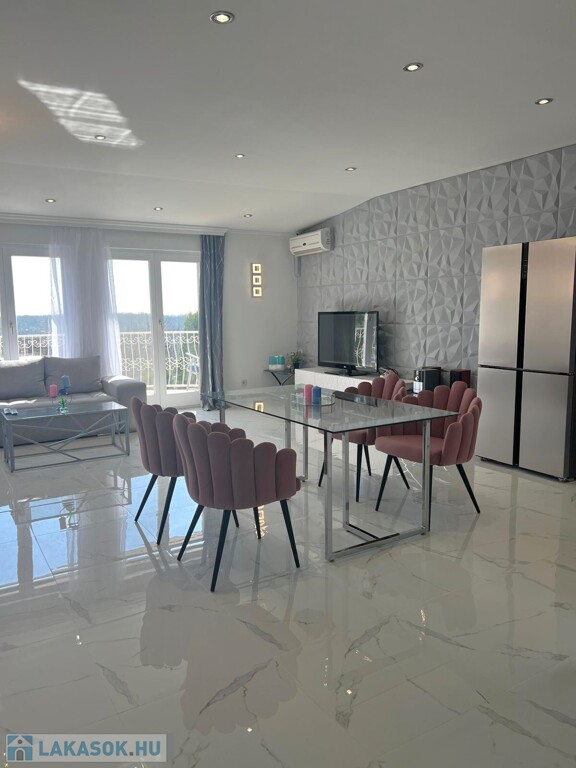 The large windows of the American kitchen-dining room and living room let in sunlight, and from the balcony you can enjoy a beautiful panorama of the Buda hills and the garden with a pool. The windows are equipped with shutters. The apartment was completely renovated in 2006.