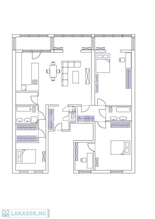 -Hálószobák: a nappali két oldalán található a három különnyíló hálószoba. Emellett van egy kisebb szoba is, amely irodának vagy vendégszobának is tökéletesen használható.
