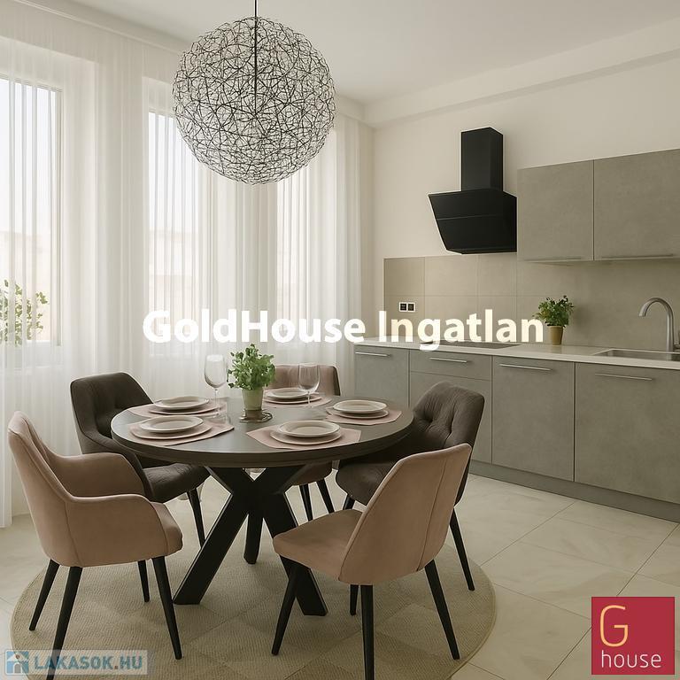 A hatalmas, teljesen gépesített konyhában kényelmesen elfér egy étkezőasztal is, így a mindennapok központi tere lehet. A praktikus kamra, a tágas előszoba – amely akár váróként is funkcionálhat –, a világos loggia, valamint a zuhanyzós fürdőszoba és a külön vendég WC mind a kényelmet szolgálják.