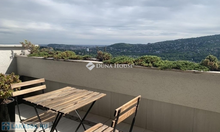 IGAZI RITKASÁG TÖRÖKVÉSZ KEDVELT RÉSZÉN!REPREZENTATÍV KÖRNYEZETBEN IGÉNYES, PANORÁMÁS, TERASZOS LAKÁS GARÁZZSAL ÉS TÁROLÓVAL!II. kerületben, ELEGÁNS környéken, az Endrődi Sándor utcában, jó állapotú, szigetelt teraszházban eladó egy 97nm-es (+9nm terasz), nappali + 3 hálószobás, MODERN STÍLUSBAN felújított 2. emeleti lakás, ÖRÖKPANORÁMÁVAL a János-hegyre. Az ingatlant a tágas terek, a kiváló elosztás, a komfort és a funkcionalitás jellemzi:- egyedi belsőépítészeti megoldások- kiváló minőségű gépesített konyhabútor- beépített szekrények- panorámás terasz- önálló garázs és nagy tároló (15nm)- klíma- riasztóA lakás déli tájolásának köszönhetően rendkívül világos, körbe napozott. Az ingatlanhoz tartozó garázs és tároló megvásárolandó további 15.000.000,-Ft összegben. A környék közlekedése és infrastruktúrája is kiváló: pár perc sétával könnyedén elérhető az 5-ös, 91-es, 149-es és 291-es buszok megállója, továbbá autóval pillanatok alatt megközelíthető számos élelmiszerbolt, bevásárlóközpont (Rózsakert, Rózsadomb Center, Mammut), óvoda, iskola, bank, orvosi rendelő továbbá számos kikapcsolódási lehetőség (mozi, éttermek, túraútvonalak) található a közelben.AMENNYIBEN KELLEMES HANGULATÚ OTTHONÁT KERESI A BUDAI HEGYEK KRISTÁLYTISZTA LEVEGŐJÉBEN, MÉGIS KÖZEL A BELVÁROSHOZ, EZT AZ INGATLANT LÁTNIA KELL!