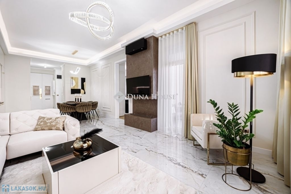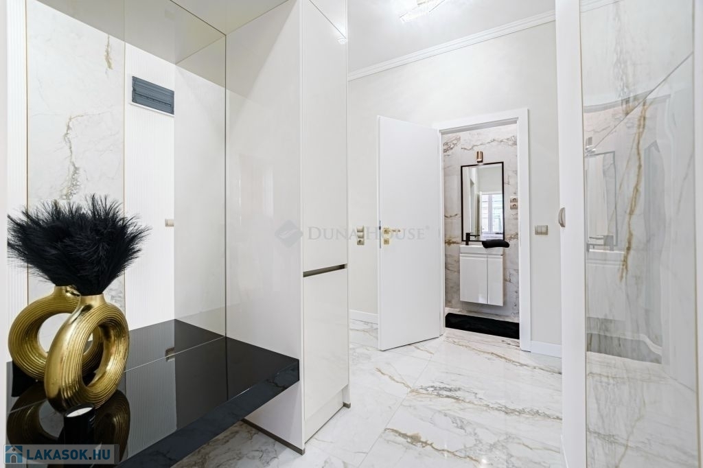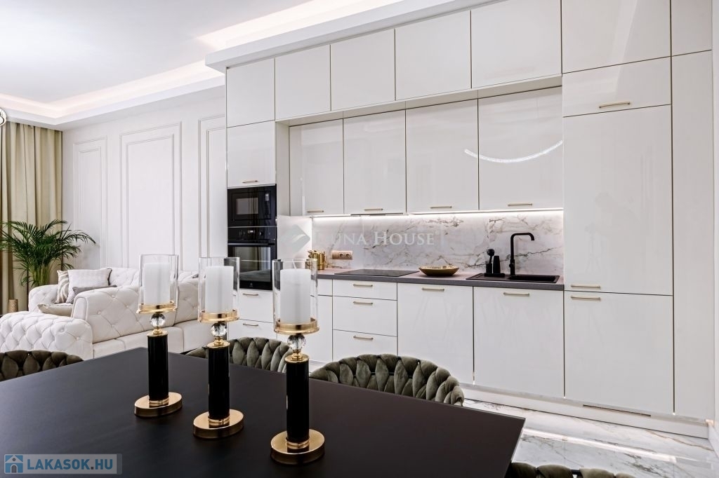 ERKÉLYES DUNAI PANORÁMÁS LUXUS KIVITELEZÉSBEN FELÚJÍTOTT 91-nm-es LAKÁS ELADÓ!2. kerület frekventált részén a Bem József utcában eladóvá vált ez a 91 nm-es, 5nm-es erkéllyel rendelkező, utcai nézetű, Dunai panorámás, napfényes, luxus kivitelezésben felújított lakás, amely egy rendezett, szép állapotú Társasház 3.emeletén található.A belsőépítészek nagy hangsúlyt fektettek a lehető legpraktikusabb elrendezésre, ezzel is minél jobban kihasználva a lakás adottságait. Így került kialakításra 2 hálószoba, 2 fürdőszoba, tágas gépesített konyha étkezővel, hatalmas nappali, tágas előszoba és egy gardrób szoba.A lakásban a bútorok egyrészt neves lakberendező által egyedileg tervezett és gyártott exkluzív, illetve egyedi olasz desing bútorokkal berendezett, melyeket még szebbé varázsolnak a gyönyörű textíliák.Minden térben található egy-egy jól használható, azaz tárolásra alkalmas beépített bútordarab, így például a lakásban lévő beépített szekrények rengeteg rakodófelületet biztosítanak az új lakók számára. A lakás továbbá teljeskörűen gépesített, mosó-szárítógéppel, mosogatógéppel, beépített minőségi konyhagépekkel, hangszigeteléssel, Daikin hűtő-fűtő klímákkal felszerelt.Hálószobák díszfalai kővel és lamellákkal burkoltak, melyek exkluzív, szép felületei egyedi és különleges hatást kölcsönöznek a térnek. Az ágyak egyedileg ide tervezett kárpit fejvégeket kaptak, melyek mögött egyedileg tervezett világítástechnika került kialakításra, hogy még hangulatosabbá tegye a hálószobákat.A fürdőszobákban kiváló minőségű szaniterek (Laufen, Blanco Blancozia, Arezzo...stb.) és a lakás stílusához illő olasz design burkolatok kerültek felhasználásra. A nappaliban és hálószobákban kiváló technikával rendelkező okos TV-k kerültek felszerelése, illetve Daikin klímák kerültek beépítésre. Neves designerek dekorációi igazán modern, mégis elegáns hangulatúvá teszik az ingatlant.A vételár tartalmazza a teljes bútorzatot és kiegészítőket!Extrák:Led világítás, Klíma, Bio kandalló, Hangszigetelés, Gránit mosogató, Egyedileg gyártott olasz bútorok, Mosható falfelületek, Bio kandalló, klímákAz elegáns megjelenést kölcsönöz ismert tervezők textíliái és dekorációs elemei.-2023-ban teljeskörű felújítás-Daikin Hűtő-fűtő Klíma-Panoráma Dunára, Margithídra-Tágas panorámás erkély-Hőszigetelt nyílászárók-Szomszédos oldalak és utca felőli falfelületek hangszigetelése-Az ablakok alumínium elektromos redőnyökkel felszerelt-Minőségi konyhagépek kerültek beszerelésre-Igényes olasz dezing bútorokkal berendezettParkolási lehetőség:A társasház mellett lévő szálloda teremgarázsában autóbeálló bérelhető vagy vásárolható.Környék:A környék frekventált, Margit híd, Margitsziget és a Duna part sétatávolságra található. A ház mellett épül a BEM projekt, itt luxus szállodát, irodaházat létesítenek, parkosítanak, korlátozzák a forgalmat.Amennyiben az ingatlan felkeltette érdeklődését, keressen bizalommal a részletekkel kapcsolatosan.FEELING OF LIFE IN BUDA..!RENOVATED 91 sqm APARTMENT WITH BALCONY AND PANORAMIC DANUBE VIEW FOR SALE!In Bem József utca, a frequented part of the 2nd district, this 91 sqm, 5 sqm balcony, street view,Danube panoramic, sunny, luxuriously renovated apartment is for sale, located on the 3rd floor of anorderly, well-maintained condominium.The interior designers put a lot of emphasis on the most practical layout possible, thus making themost of the apartment, 2 bedrooms, 2 bathrooms, a spacious mechanized kitchen with a diningroom, a huge living room, a spacious hall and a wardrobe room.The furniture in the apartment is furnished with exclusive and unique Italian design furnitureindividually designed and manufactured by a renowned interior designer, which is made even morebeautiful by the beautiful textiles.Every space has a built-in piece of furniture that can be suitable for storage, so for example the built-in wardrobes in the apartment provide plenty of storage space for the new residents. The apartmentis also fully mechanized, equipped with a washer-dryer, a dishwasher, built-in quality kitchenappliances, sound insulation, and Daikin cooling and heating air conditioners.The decorative walls of the bedrooms are covered with stone and slats, the exclusive, beautifulsurfaces of which give the space a unique and special effect. The beds were given custom-designedupholstery headboards, behind which individually designed lighting technology was installed to makethe bedrooms even more cozy.In the bathrooms, high-quality sanitary ware (Laufen, Blanco Blancozia, Arezzo...etc.) and Italiandesign coverings matching the style of the apartment were used. Smart TVs with excellenttechnology were installed in the living room and bedrooms, and Daikin air conditioners wereinstalled. Decorations by well-known designers give the property a truly modern, yet elegantatmosphere.Extras:Led lighting, Air conditioning, Bio fireplace, Sound insulation, Granite sink, Custom-made Italianfurniture, Washable wall surfaces, Bio fireplace, air conditionersTextiles and decorative elements from well-known designers give it an elegant look.- Complete renovation in 2023-Daikin Cooling-heating Air conditioner- Panorama of the Danube, Margthíd-Spacious panoramic balcony-Heat-insulated doors and windows-Sound insulation of neighboring sides and wall surfaces facing the street-The windows are equipped with aluminum electric shutters- Quality kitchen appliances have been installed- Furnished with refined Italian design furnitureParking opportunity:A parking space can be rented or purchased in the garage of the hotel next to the apartmentbuilding.Surroundings:The neighborhood is frequented, Margit Bridge, Margit Island and the Danube shore