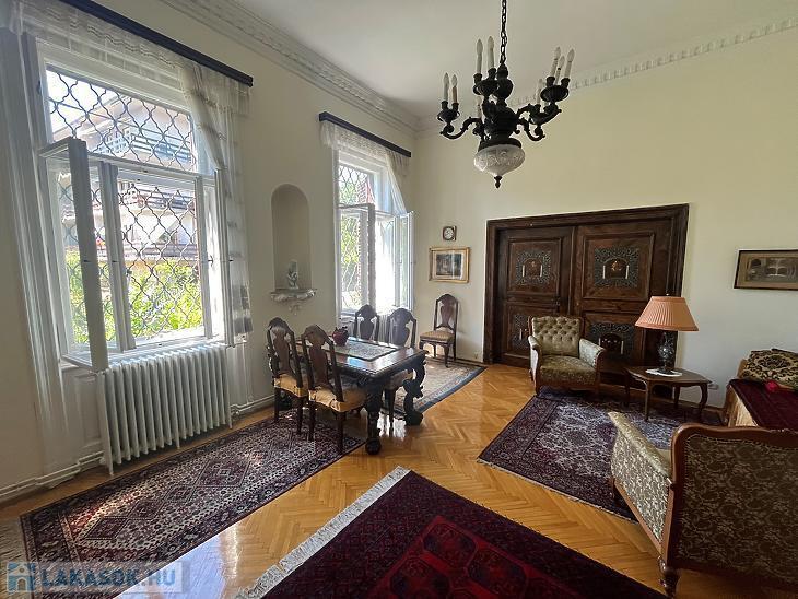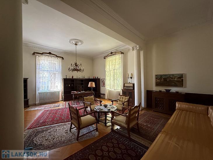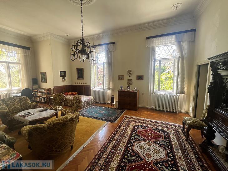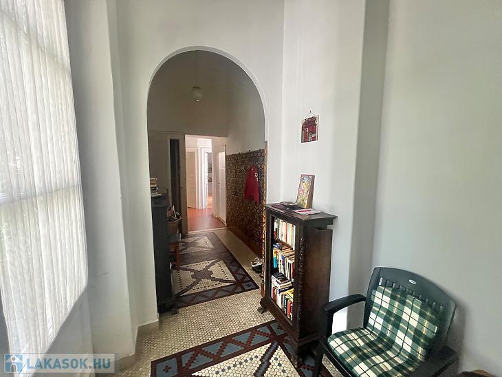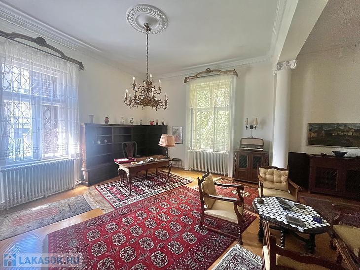 Eladó egy kivételes adottságokkal rendelkező, 195 m²-es, kertkapcsolatos lakás csendes mellékutcában, zöldövezeti környezetben. A lakás külön bejárattal rendelkezik, így teljes intimitást biztosít lakóinak. A 4 méteres belmagasság és a hatalmas ablakok tágas, világos tereket teremtenek, amelyek egyedülálló hangulatot nyújtanak.