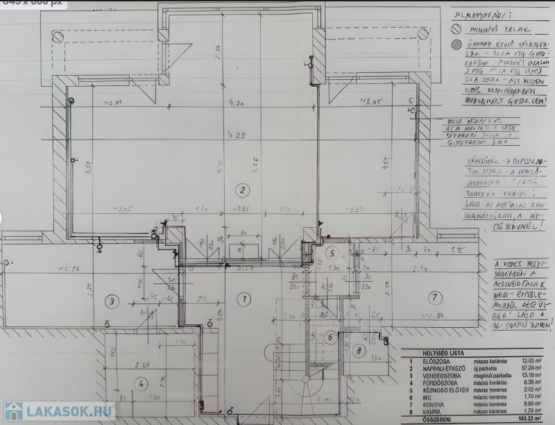 Nettó alapterület: 210 m² (102m² + 108 m²), két szintes elrendezés, több szinten elkülönített funkcionális zónák.