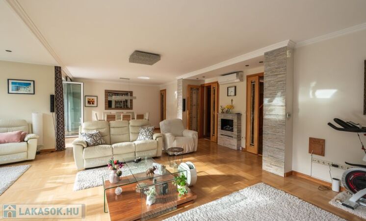 Kényelmi extrák :Modern hűtő-fűtő klímák, energiatakarékos Vaillant kazánok. 4 rétegű üvegezés, így a fűtési költségek rendkívül kedvezőek. A vízdíj a közös költségben. Valamint a kerteszeket és a heti kétszeri lépcsőházi takarítást is tartalmazza. A nappaliban egy elektromos kandalló fokozza a kellemes hangulatot de fűtésre is alkalmas.