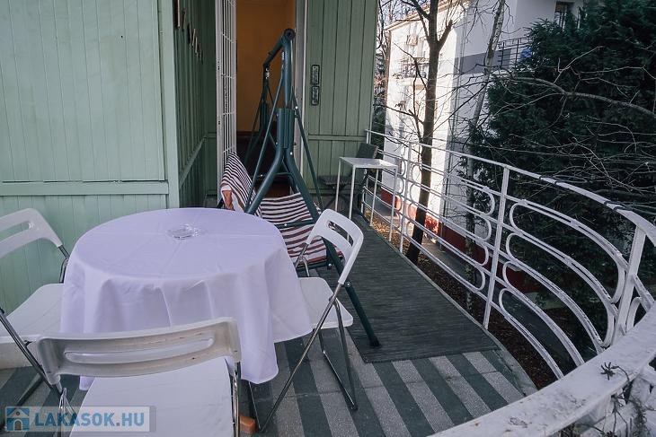 Budapest egyik legkedveltebb, zöldövezeti részén, a II. kerületi Lorántffy Zsuzsanna lépcsőn kiadó egy első emeleti, állatbarát, 94 nm-es, világos, teljesen bútorozott lakás, tágas terasszal.