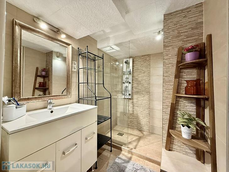 A felújítás során minden megújult – vezetékek, burkolatok, nyílászárók –, több válaszfal elbontásával pedig egy sokkal tágasabb tér alakult ki. A lakás külön kamrával, külön WC-vel és egy ízlésesen kialakított zuhanyzós fürdőszobával rendelkezik. A közös költség részét képezi a fűtés is.