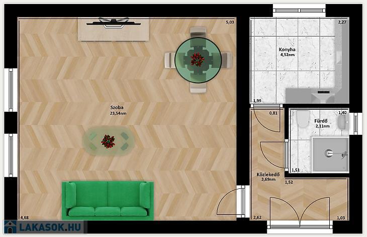 A lakás szerves részét képezi a közvetlenül mellette található 2nm-es kamra.