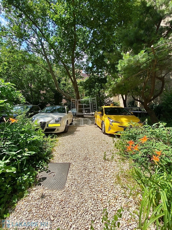 A parkolás a társasház hátsó elkerített részében megoldható.