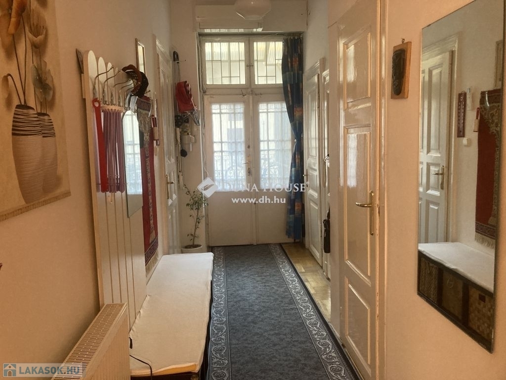 Eladó a 2.kerületben az Erőd utcában egy első emeleti 61nm-es 2 szobás, szép állapotú lakás HOLTIG TARTÓ HASZONÉLVEZETTEL.Az ingatlan egy 3 emeletes lift nélküli 15 lakásos polgári épület első emeletén helyezkedik el a folyosó utolsó lakásaként, tehát a konyha ablaka előtt nincs eljárkálás, így a folyosó ezen része erkélyként is használható.A két szoba ablaka az Erőd utcára néz. A szobák és az előszoba szép parkettával fedettek, a többi helyiség járólapos. A konyhában az ablak ki lett új műanyag nyílászáróra. Minden ablakra redőny lett felszerelve.A tárolást egy kamra segíti, ahol a mosógép is helyet kapott. A fürdőszoba és a bidés wc külön helyiségben található. Télen a fűtésről gázcirkó gondoskodik, a melegvizet villanybojler biztosítja. A nyári hőséget inverteres klíma segít elviselni.A társasház lakói csendes, rendes emberek. A környék közlekedése és ellátottsága kiváló. A körút néhány méterre található, ahol a 4-es és 6-os villamosokkal a belváros számos pontjára, illetve metró megállókhoz jutunk el.A közelben számos bevásárlási lehetőség áll az itt lakók rendelkezésére.Bővebb felvilágosításért illetve megtekintéssel kapcsolatban várom megkeresését.