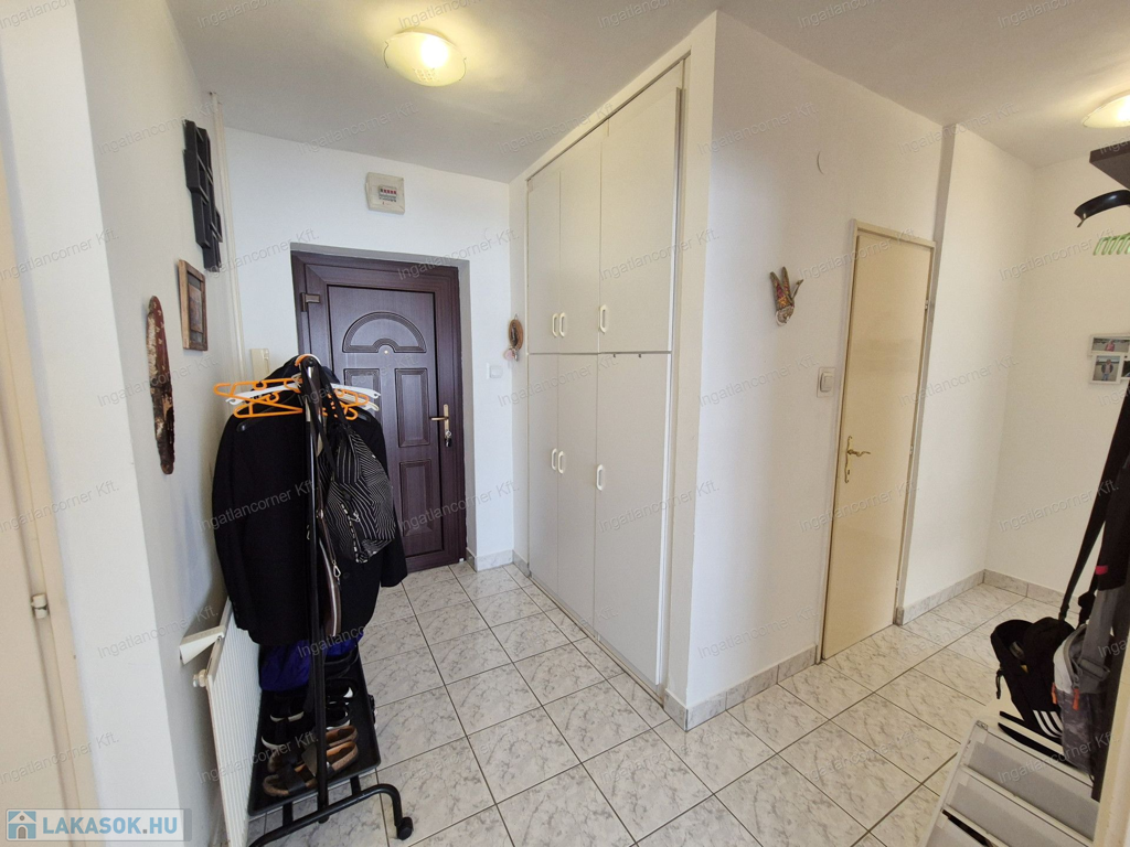 -a beépített konyhabútor a hozzá tartozó Electrolux légkeveréses sütőt, a hozzá tartozó gáztűzhellyel, továbbá az előszobában lévő faltól falig és mennyezetig beépített előszoba bútor.