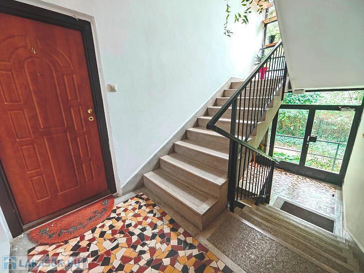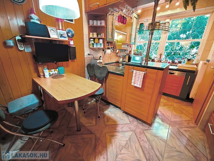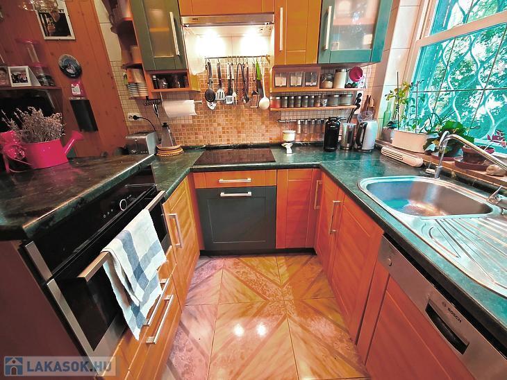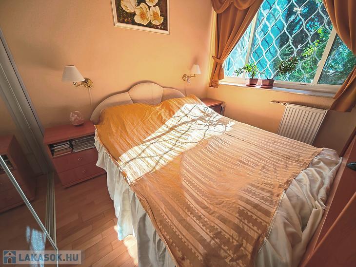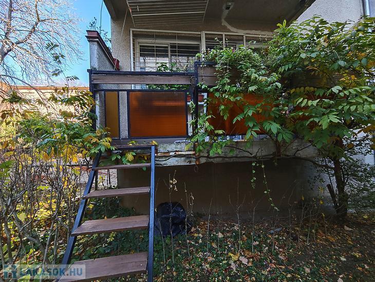 Hűvösvölgyi úton, közel a Szerb Antal utcához, egy parkosított területen található, az úttól távol eső társasházban, egy magasföldszinti, kertre néző, jó állapotú, jó elosztású, erkélyes, kertkapcsolatos lakás. A lakás minden helysége ablakos, a konyhában található egy kis étkezősarok, és egy ablakos kamra is. 2015-ben történt a teljes körű felújítás, beleértve a vezetékeket, és a fűtésrendszert, mely kombicirkó. A nappaliból nyíló loggia Dk-i tájolású, és oldalkert irányába néz, ahonnan egyből le tudunk menni a kertbe. Pincetároló és 1 autó számára kerten belüli gépkocsibeálló tartozik a lakáshoz. Ezenkívül tartozik egy 15nm-es garázs is a lakáshoz, melynek vételára +18M Ft.