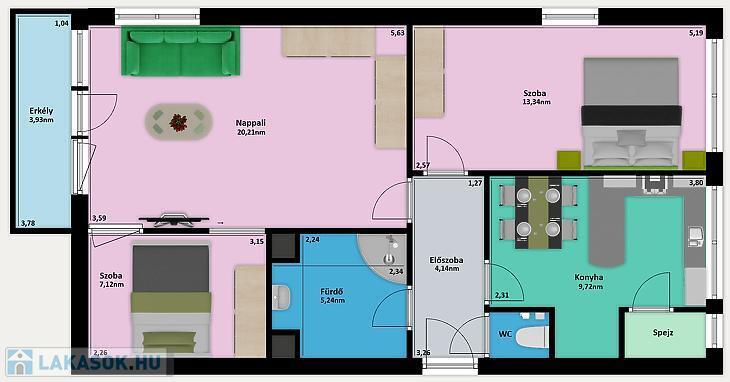 A lakás több extrát is tartalmaz. Ilyen például a központi porszívó, a vízszűrő vagy a riasztó.