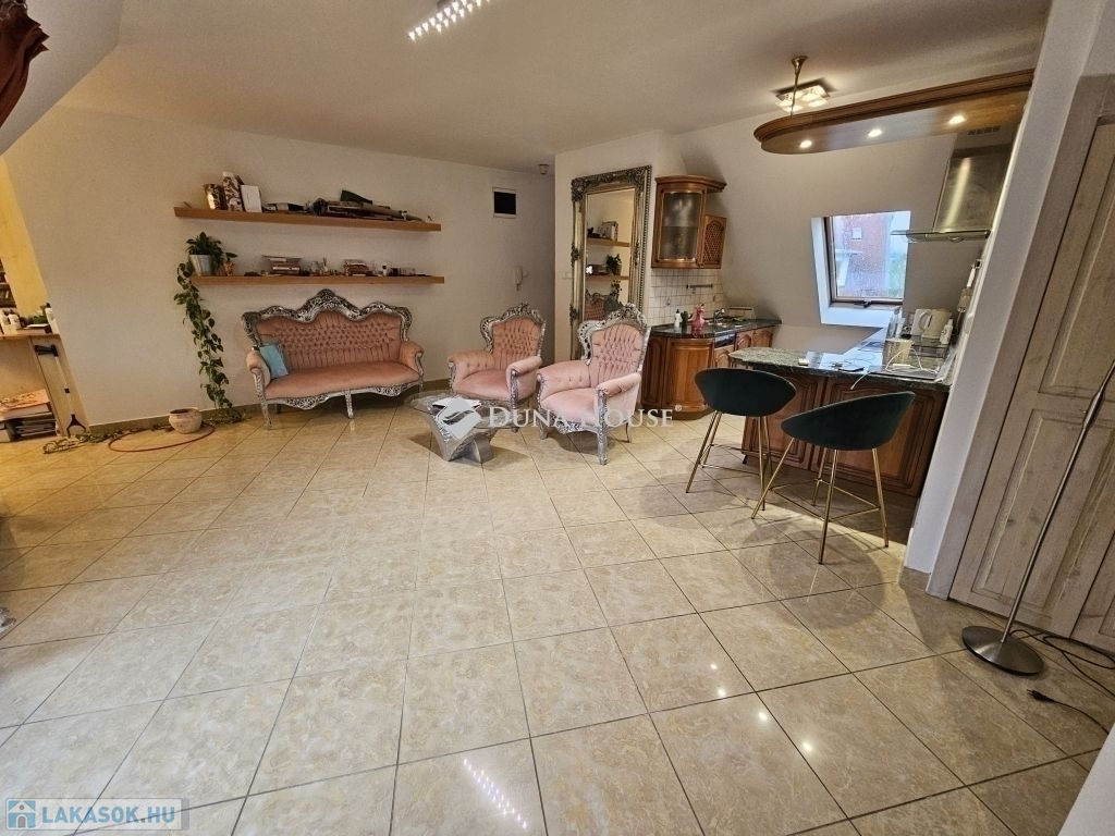 A lakás az épület 2. szintjén helyezkedik el, ahol másik lakásnak már nincs bejárata. Felette még egy beépítetlen padlástér van.