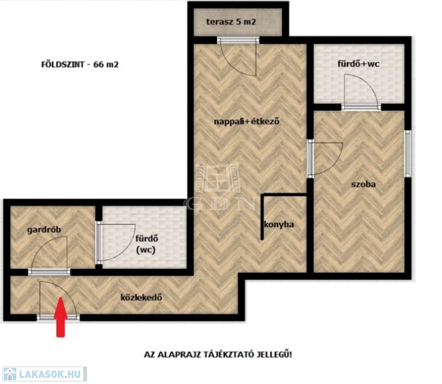 FÖLDSZINT – 66 m2 – 2 szoba – 2 fürdő – gardrób + 5 m2 terasz