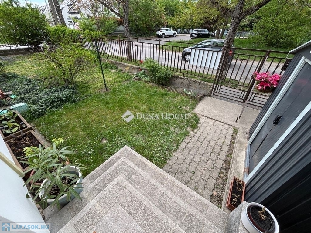 Az ingatlanhoz tartozik egy saját használatú, lekerített kertrész ideális reggeli kávézáshoz vagy kerti sütögetéshez , valamint egy közös udvar is, ahol elméletben egy autó számára a parkolás biztosított.
