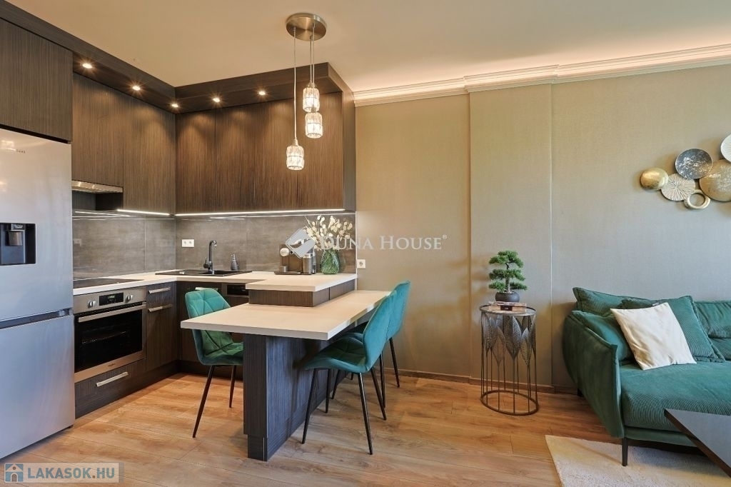 Eladó egy újszerű, teljesen bútorozott, 2 szobás lakás Óbuda zöldövezeti részén, a Testvérhegy lakókert 3. ütemében.