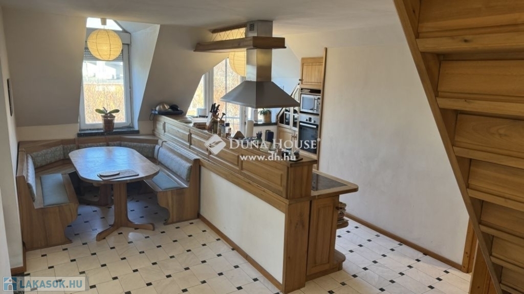 Eladó egy kivételes ingatlan, mely 1994-ben épült, 105 m² nettó, 140 m² bruttó alapterülettel rendelkezik, panorámás kilátással. Az ingatlan 4-szintes épületben helyezkedik el, belső kétszintes kialakítással, tágas nappalival és 4 hálószobával, valamint erkéllyel, amelyről lélegzetelállító a kilátás.