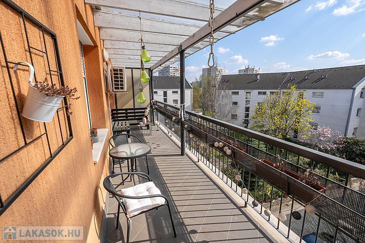 Tartozik az ingatlanhoz saját 8 négyzetméteres tároló és garázs is, valamint egy gyönyörű panorámás erkély.