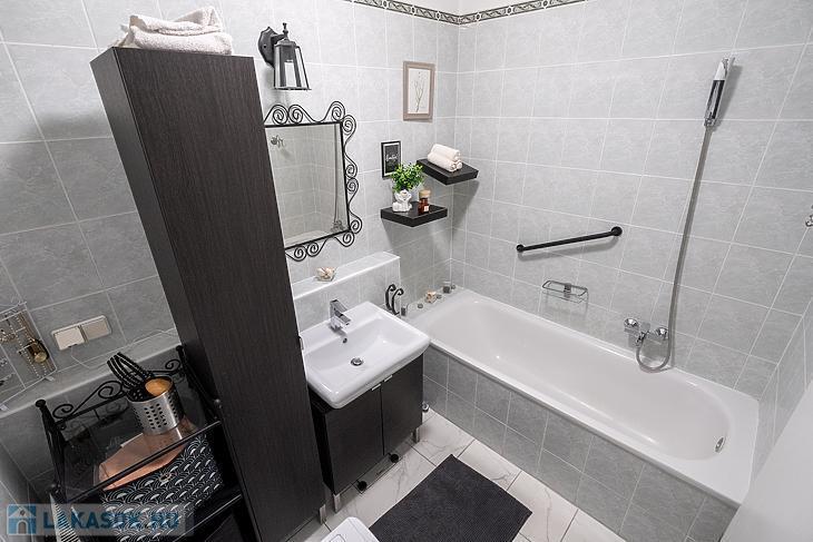 A lakásban találhatóegy nappali, étkező, konyha, kádas fürdő és 2 hálószoba.