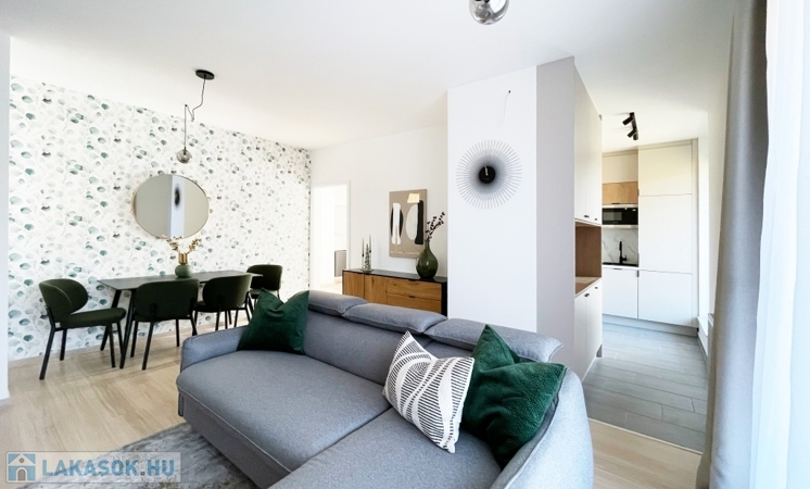 A modern megjelenés és a kiváló minőségű anyagok összhangja teszi ezt a lakást különösen vonzóvá.