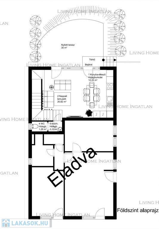A FÖLDSZINTEN - impozáns - nappali-étkező-konyhát terveztünk. Mellé kilépő teraszt építünk, ami a nyári nagy melegekben az észak-keleti, keleti tájolás miatt igazán élvezhető.