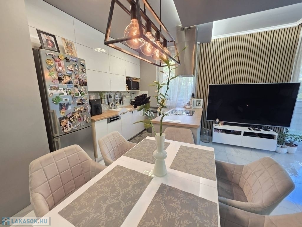 A lakás 2024-ben teljes körű felújításon esett át: a burkolatoktól a nyílászárókig minden megújult, a gépészet korszerűsítve lett, és új szagelzáró rendszer került kiépítésre, hibátlan műszaki állapotú.