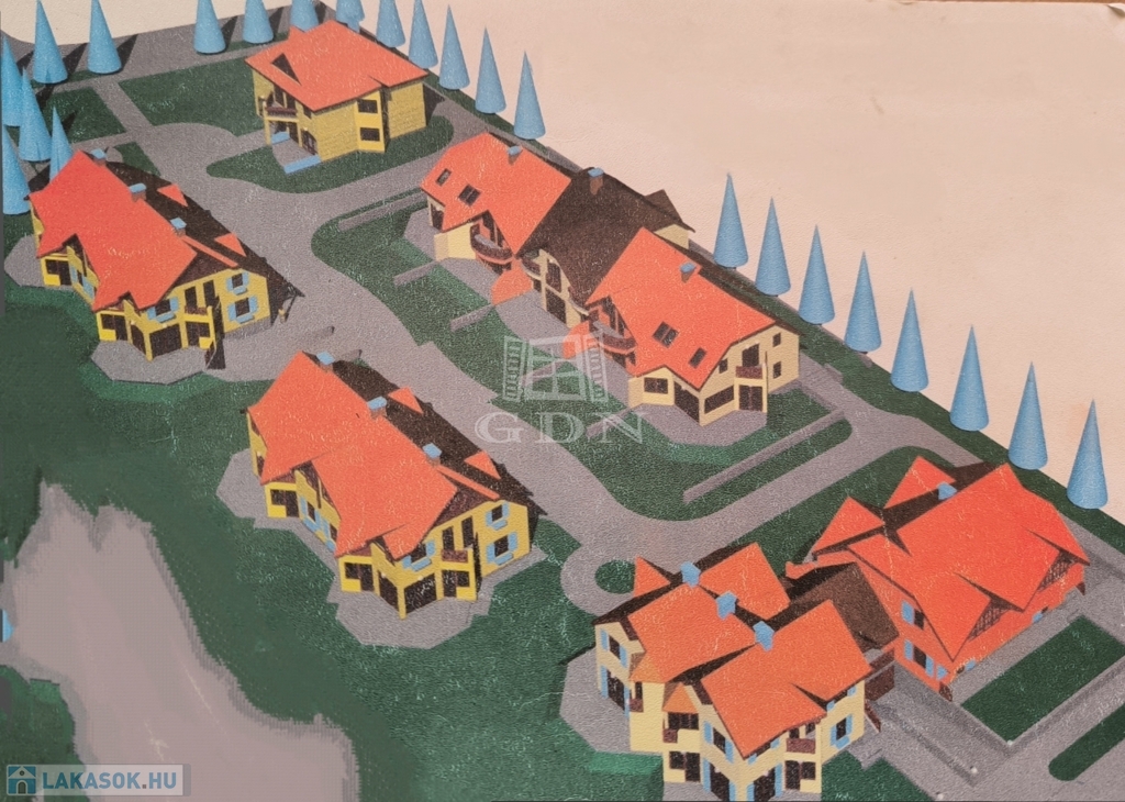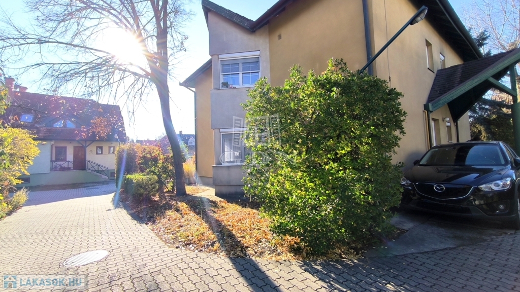 1994-ben kialakított lakópark (két utcára nyílik) 16 családnak kínál nyugodt, kényelmes életet. Szépen karbantartott közös kert ( van SAJÁT KERT is), télen is takarított utcák, kis játszótér a gyerekeknek, gondnok, stb.