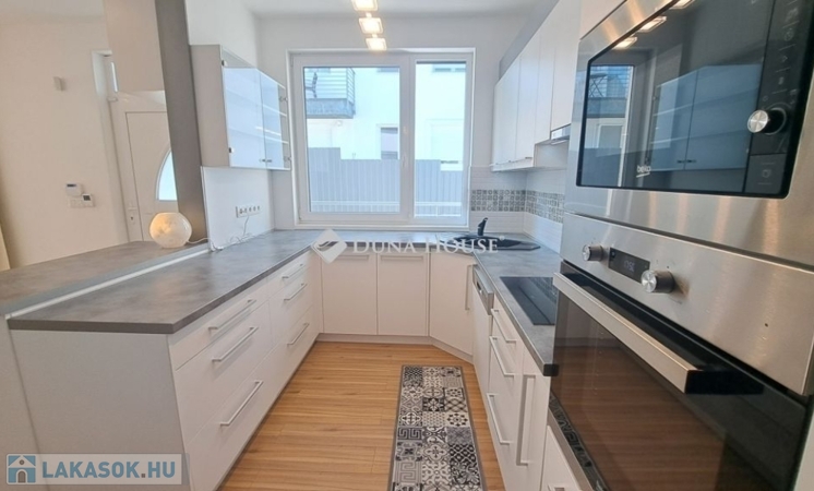 Az alagsorban ablakos és bevilágított mosókonyha található, valamint innen közelíthető meg egy közös tároló és a teremgarázs is.