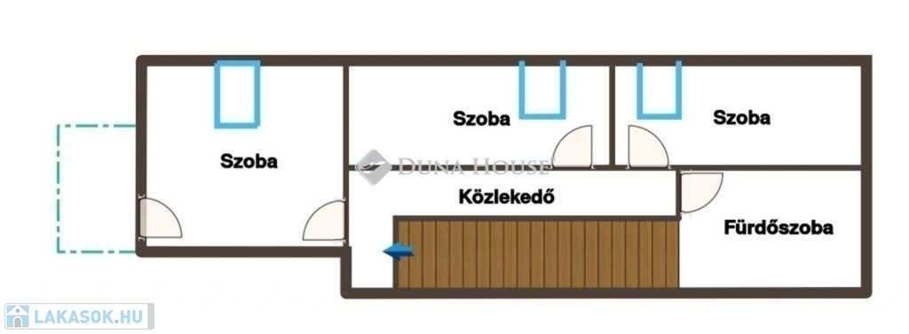 Az emelet található a három hálószoba s az emeleti fürdőszoba.