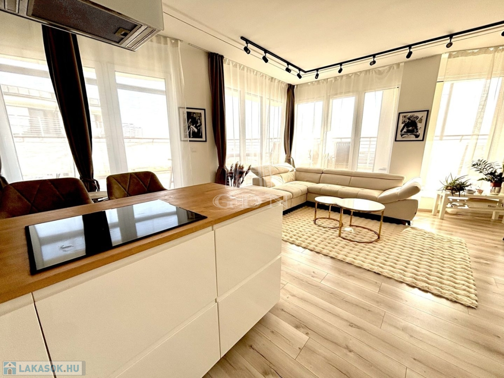 A lakás teljesen bútorozottan, klimatizáltan és azonnal költözhető állapotban eladó. Az épület új építésű, igényes lakberendezési megoldásokkal, lifttel, teremgarázsban kényelmes parkolási lehetőséggel (opcionálisan 10 millió Ft-ért megvásárolható).