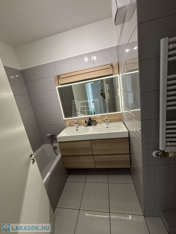 Két fürdőszoba: az egyik káddal és dupla mosdóval, a másik praktikus zuhanyzóval