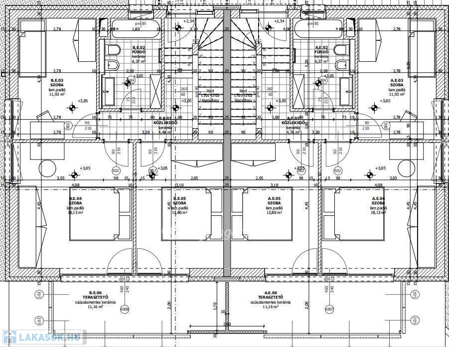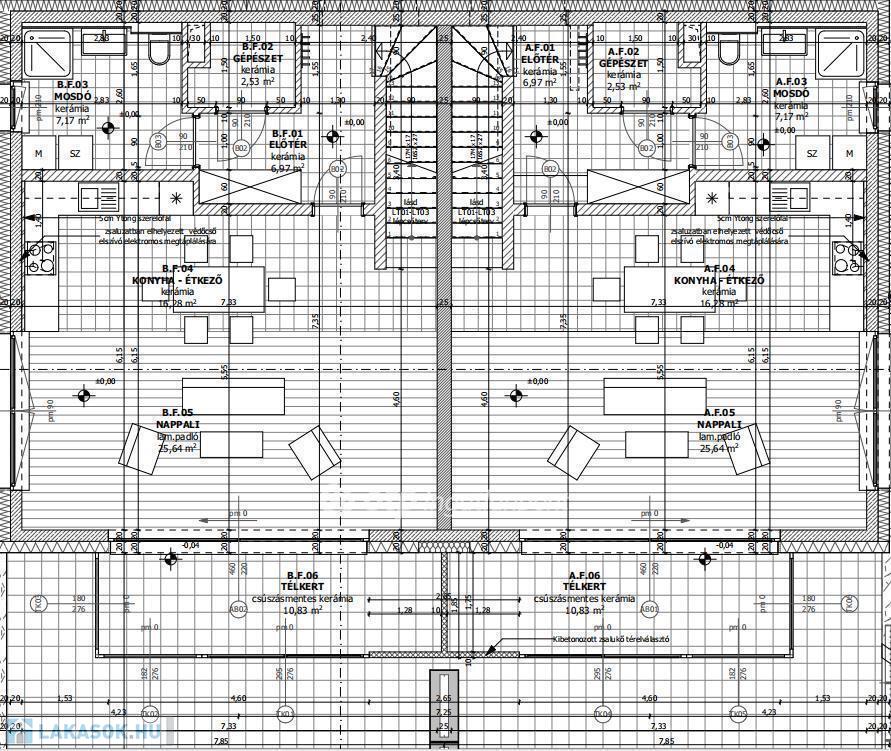 Lakásonként normál hálózaton a tervezett villamos csatlakozási teljesítmény 3x20 A.