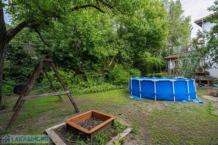 A kellemes méretű kert számos lehetőséget kínál: ideális lehet pihenésre, gyermekeknek játszótér kialakítására vagy akár egy teraszos kerti kiülő megvalósítására is
