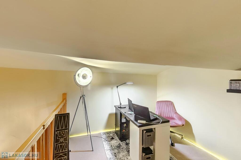 Az otthon 64 nm-es,földszinti, nagyon csendes, 2 szobás, valamint szinte egy teljesértékű galéria növeli az életteret ami 10 nm-es.