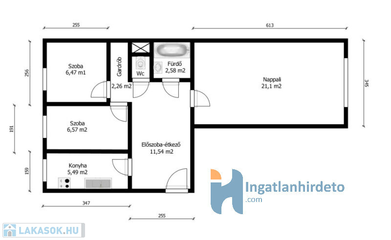 Fűtés: távfűtés egyedi mérővel (átalány 9.600 Ft/hó)