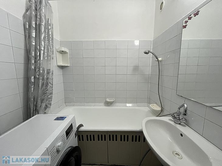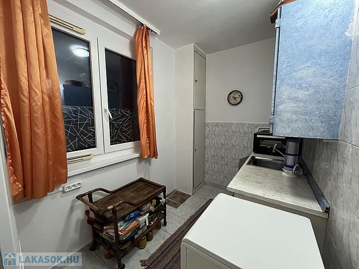 A konyha jól alakítható, praktikus méretű, nagy ablakának köszönhetően jól szellőztethető és világos. A fürdőszoba és a Wc külön helyiségben kapott helyet, a fürdőben öntöttvas kád található. A mosógép kiállása jelenleg nincsen kialakítva.