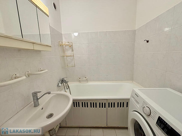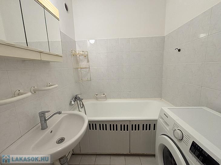 A fürdőszoba és a Wc kulturált, jó állapotú burkolatokkal rendelkezik, a fürdőben egy öntöttvaskád található.