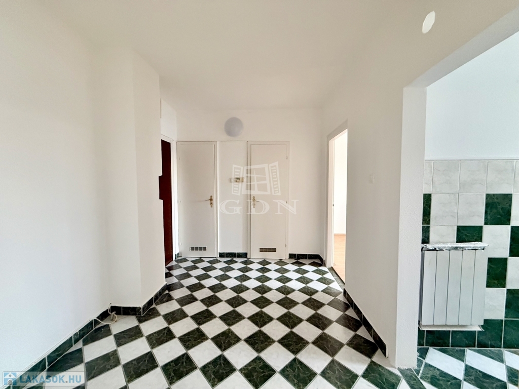 A keleti tájolás kellemes benapozottságot biztosít, a lakás összhatása rendezett, megkímélt. Nem igényel azonnali beavatkozást, ugyanakkor később könnyen alakítható saját igények szerint.