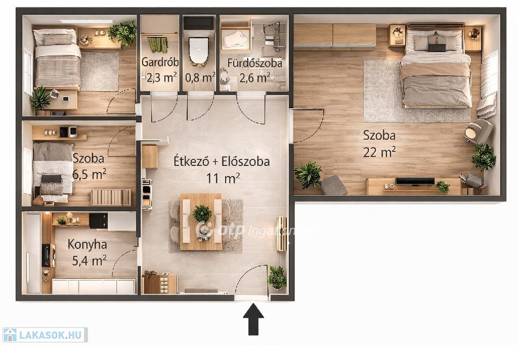 Kiváló elosztású egy plusz két félszobás nagyon praktikus gardróbbal!