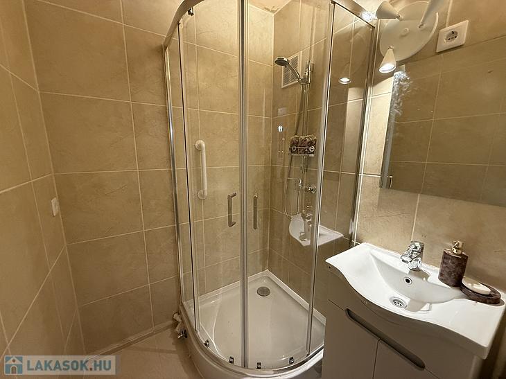 A fürdőszobában beépített zuhany került kialakításra.