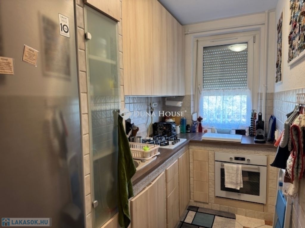 A lakáshoz egy hangulatos, 2 m²-es erkély is tartozik, ahonnan zavartalanul élvezheted a kilátást. A konyha modern és gépesített, a fürdőszoba és a WC külön helyiségben található, mindkettő prémium burkolatokkal felújítva.