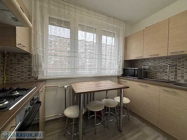 A lakás egy 10 emeletes panelház 3. emeletén található, nyugati fekvésének köszönhetően világos, délutánonként kifejezetten kellemes fényviszonyokkal.