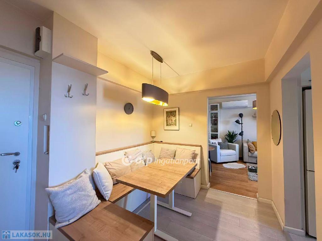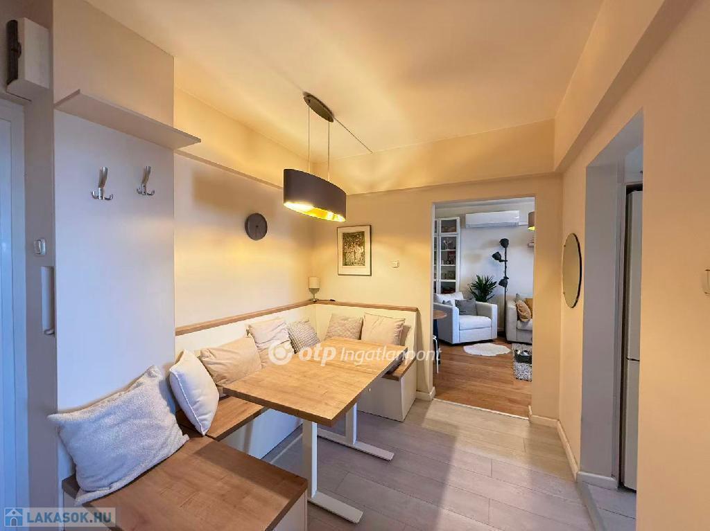 A délnyugati tájolású, rendkívül napfényes otthon 1980-ban épült, belmagassága 2,6 méter, helyiségei kellemesen tágasak és praktikusan kialakítottak. A lakásban beépített konyhabútor, légkondicionáló és redőny is található, a fűtés távfűtéses, a rezsit pedig a két vízóra és a mindössze 13.000 Ft-os közös költség teszi kedvezővé. A ház előtt a parkolás közterületen ingyenes, a környék infrastrukturális ellátottsága pedig kiemelkedő: üzletek, tömegközlekedés, iskolák és a Duna-part egyaránt gyorsan elérhetők. A lakás berendezései igény szerint, megállapodás alapján maradhatnak, így ideális választás mindazoknak, akik gondozott, modern, bútorozott otthont keresnek Óbuda egyik legkedveltebb részén, akár saját célra, akár befektetésre.