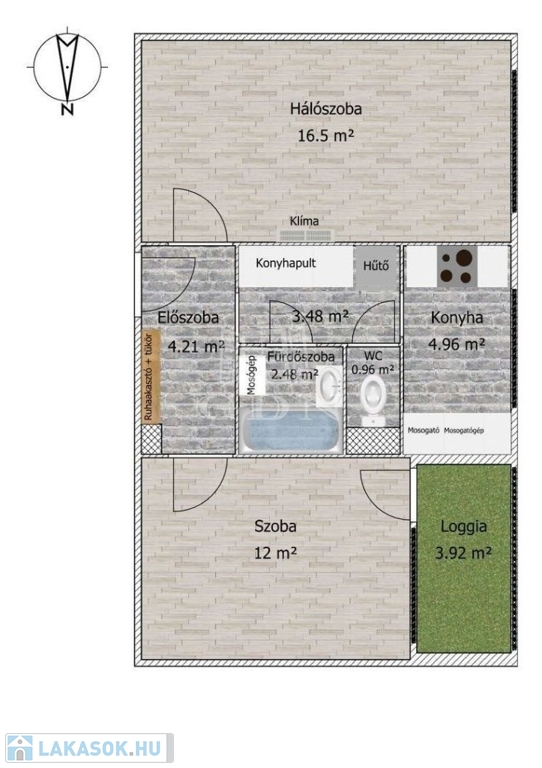 Az ingatlanhoz tartozik egy 2 négyzetméteres szúnyoghálós erkély is, ahol kényelmesen élvezheti a friss levegőt.