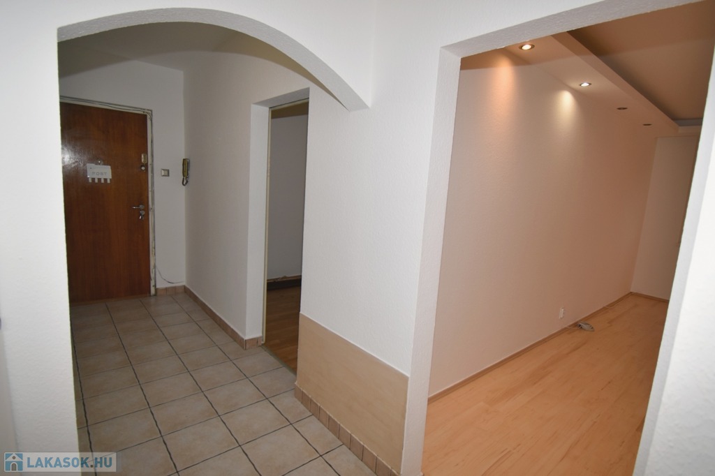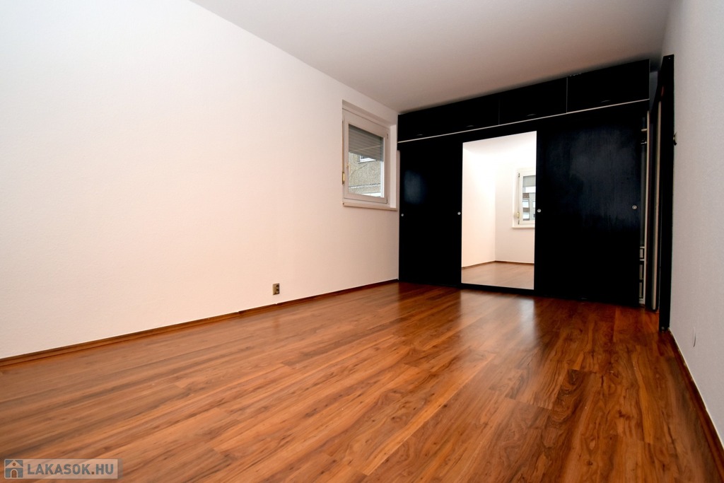 A lakás parkra néző, amely nyugodt, zöld környezetet biztosít, miközben a városi infrastruktúra előnyei is maradéktalanul elérhetők A szobák burkolata laminált parketta, míg a többi helyiség járólappal burkolt. Az ablakos konyha természetes fénnyel telített, praktikus kialakítású, ideális a mindennapi főzéshez. A fürdőszoba zuhanykabinnal felszerelt, a mellékhelyiség külön helyiségben található. A mosógép elhelyezésére a fürdőszoba melletti gardróbhelyiség ad kényelmes megoldást.