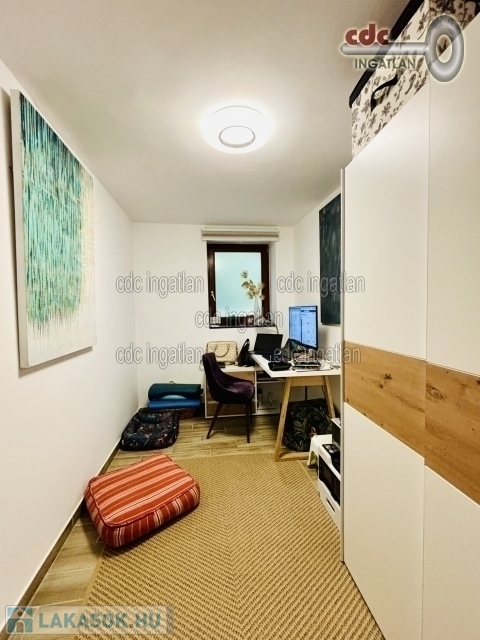A lakás elosztása ideális: tágas nappali–konyha–étkező egyben, két külön nyíló hálószoba, kádas fürdőszoba és külön WC, nagy hall, előszoba és 4 m²-es saját tároló. Az ingatlan keleti és nyugati tájolású, nagy ablakai a gondozott kertre néznek, szép burkolatokkal és rendkívül jó lakóközösséggel várja új tulajdonosát. Csendes, nyugodt környék, ingyenes utcai parkolás, a közelben óvoda, iskola, bolt, pékség – minden karnyújtásnyira. Egy igazi ritkaság Rómaifürdő szívében – a természet közelsége, városi kényelem és stílusos otthon egy helyen.