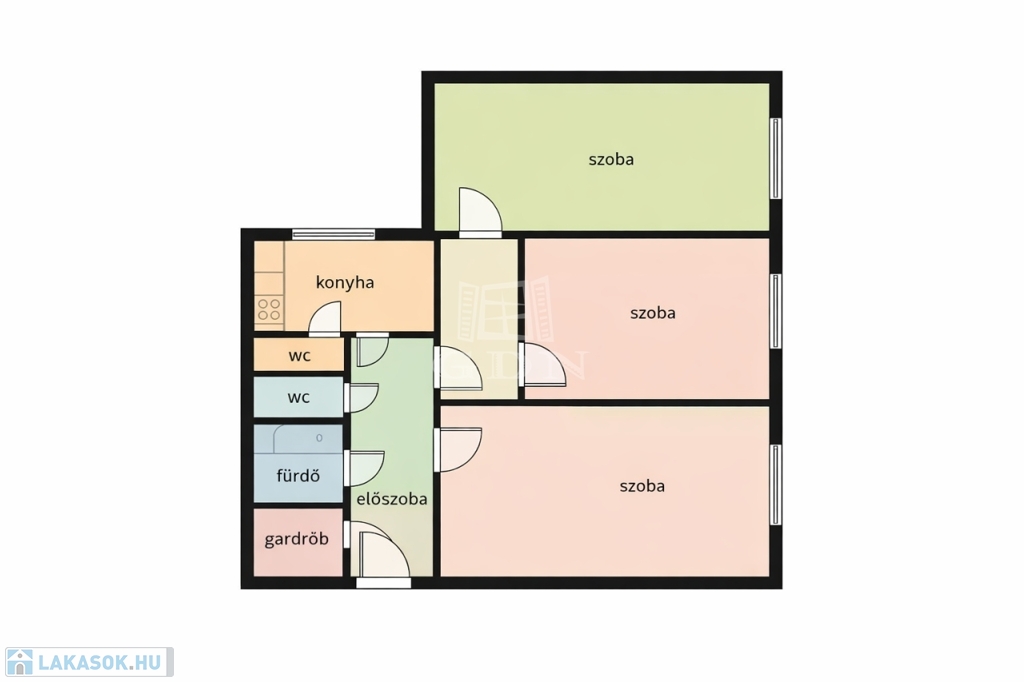 Egyik nagy előnye az ablakos konyha, valamint a három különálló szoba, ami ritkább ebben a kategóriában. A jelenlegi állapot inkább azoknak kedvez, akik saját elképzelésük szerint alakítanák ki a tereket, és nem riadnak vissza a korszerűsítéstől.